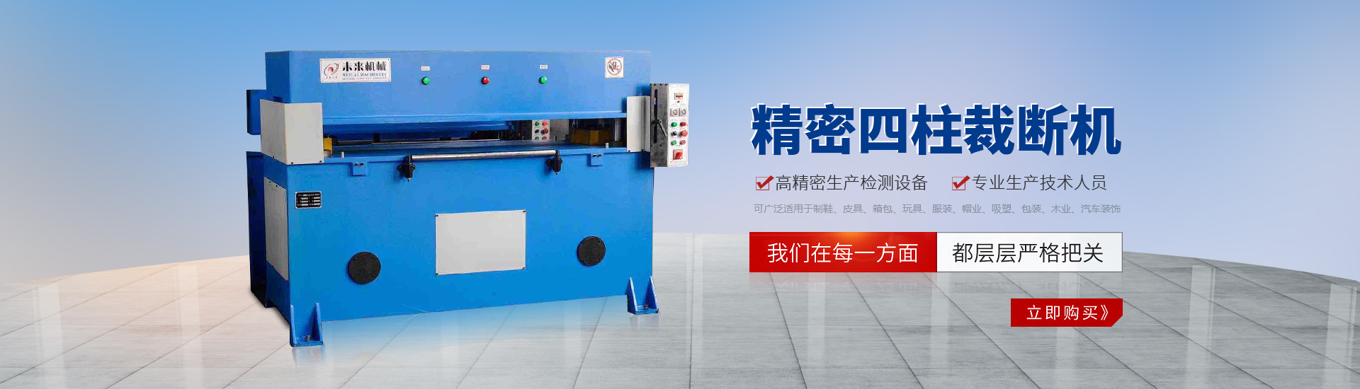 公司專(zhuān)業(yè)制造l 2T一25T液壓搖臂式裁斷機(jī):25T一30T液壓平面式裁斷機(jī);25T一30T液壓四柱龍門(mén)移動(dòng)式裁斷機(jī);25T一100T液壓四柱平面式裁斷機(jī):30T一100T精密四柱式裁斷機(jī)(自動(dòng)進(jìn)料);100T一200T液壓四柱下壓式裁斷機(jī)(自動(dòng)進(jìn)料)和客戶(hù)要求的特型裁斷機(jī)械系列。產(chǎn)品規(guī)格齊全,可廣泛適用于制鞋、皮具、箱包、玩具、服裝、帽業(yè)、吸塑、包裝、木業(yè)、汽車(chē)裝飾等行業(yè)。